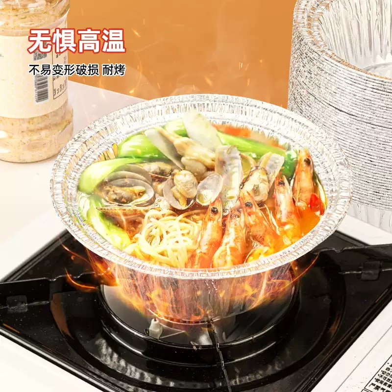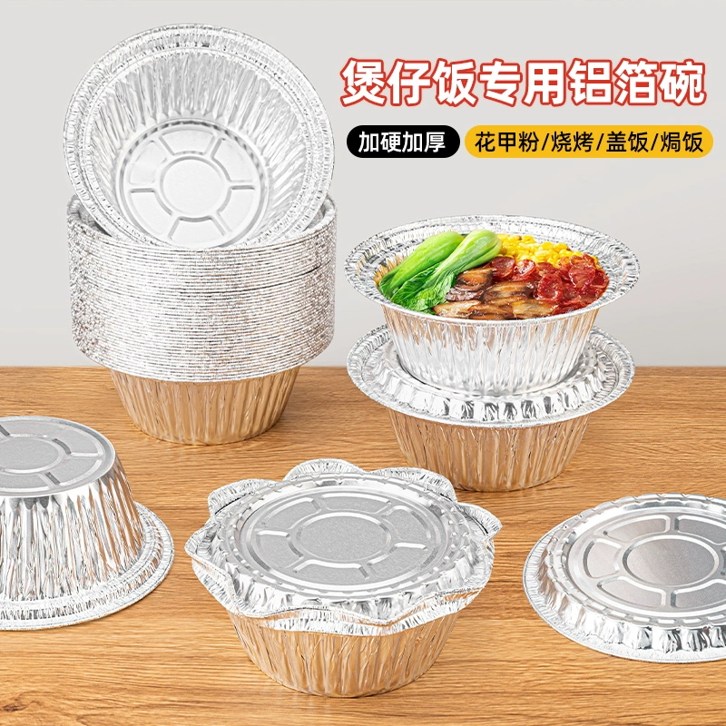 赛卓一次性圆形带盖煲仔饭外卖打包餐盒烧烤锡纸盒花甲粉专用碗 可开发票