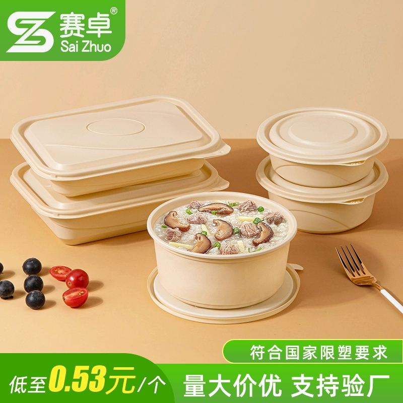 赛卓 可降解餐盒一次性碗圆形打包盒外卖环保快餐盒便当盒甜品盒